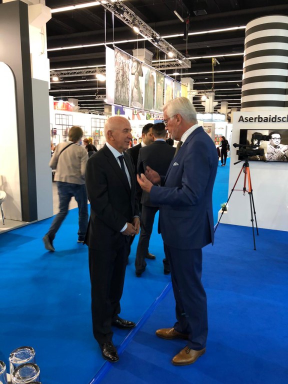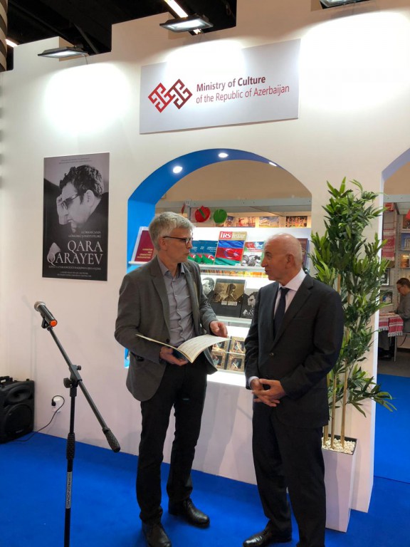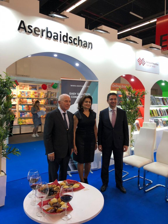 Frankfurt Beynəlxalq Kitab Sərgisində ölkəmiz "Qız qalası” və "Qala divarları” dizaynı ilə hazırlanan xüsusi stendlə təmsil olunub. Burada ümummilli lider Heydər Əliyev və Prezident İlham Əliyevin həyat və fəaliyyətini əks etdirən kitablar, tariximizə, mədəniyyətimizə, Qarabağ həqiqətlərinə dair nəşrlər alman, ingilis və Azərbaycan dillərində təqdim edilib. Sərgi çərçivəsində Azərbaycan Xalq Cümhuriyyətinin və görkəmli bəstəkar Qara Qarayevin 100 illiklərinə həsr olunan tədbir keçirildi. Mədəniyyət nazirinin müavini Vaqif Əliyev Cümhuriyyətin 100 illik yubileyi ilə bağlı keçirilən genişmiqyaslı tədbirlərin əhəmiyyətinə toxundu, dahi bəstəkar Qara Qarayevin Azərbaycan və dünya musiqisi tarixindəki xidmətlərindən bəhs etdi. "Qara Qarayev. Seçilmiş fortepiano əsərləri” və "Qara Qarayev. Həyat və yaradıcılığı haqqında qısa oçerk” kitablarının dahi bəstəkarın irsinin öyrənilməsi və dünyada təbliği baxımından əvəzsiz mənbə olduğu qeyd edildi. Türkiyənin mədəniyyət və turizm nazirinin müavini Haluk Dursun, ölkəmizin Almaniyadakı səfiri Ramin Həsənov və digərləri Azərbaycan Xalq Cümhuriyyətinin ölkəmizin tarixinin parlaq səhifəsi olduğunu bildirdilər. Eyni zamanda, dahi bəstəkar Qara Qarayevin 100 illiyi münasibətilə çap olunan nəşrlərin Azərbaycan mədəniyyətinin təbliği baxımından əhəmiyyətindən danışıldı.